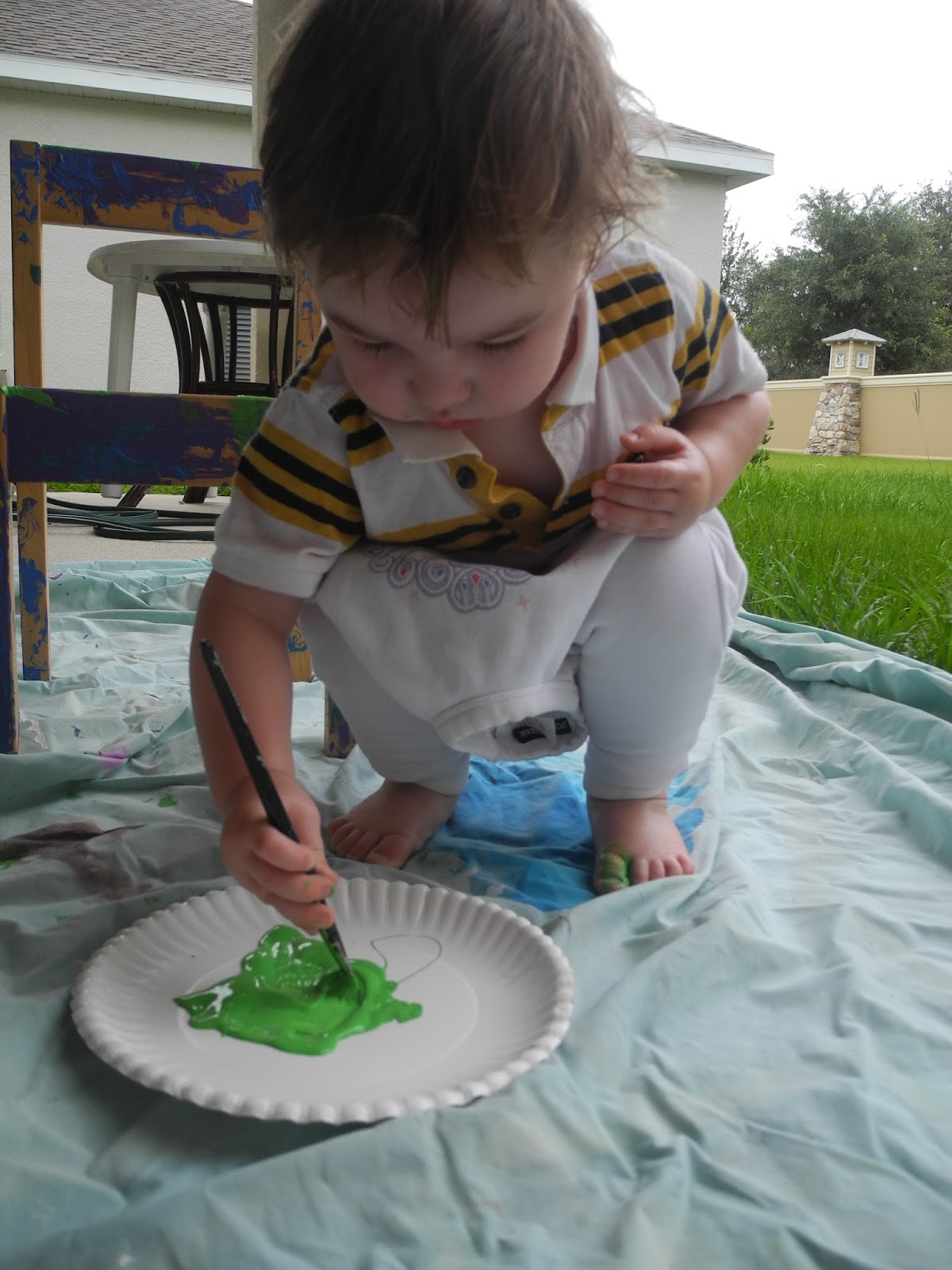I found some green hand-paints and let the kids loose.  They painted some blocks that Michael made for us. They also worked on some chairs they had painted in the past.  I think they turned out pretty good.  What do you think?