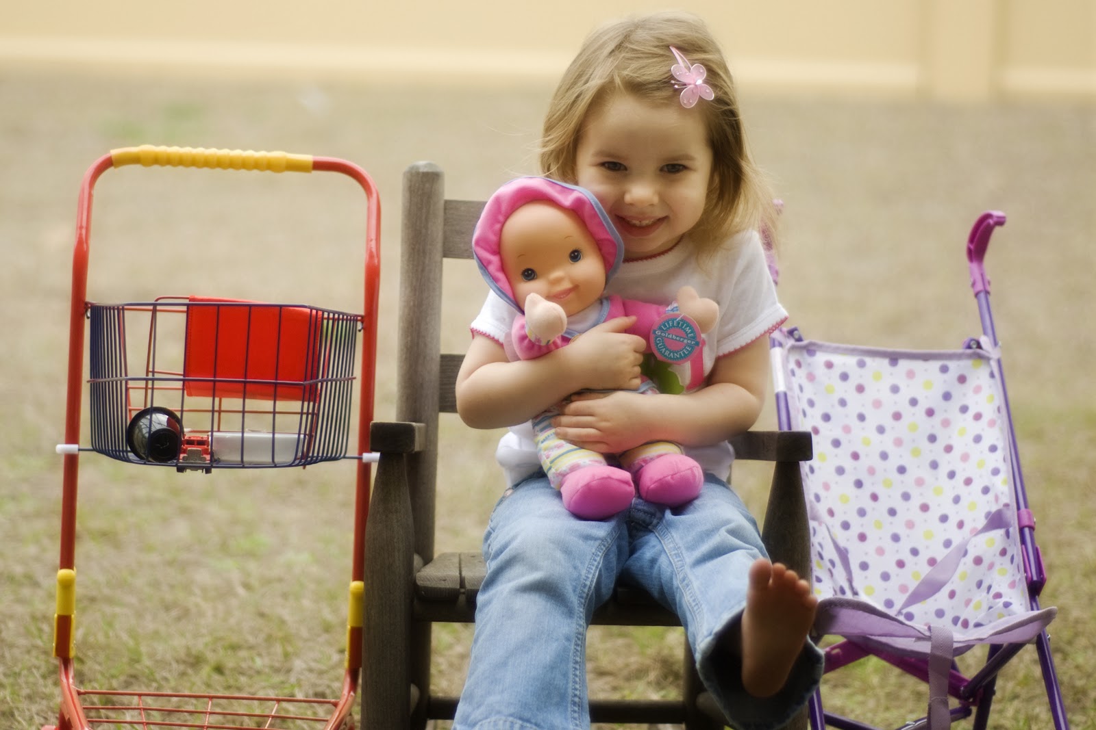 The second is the second to last picture of her where she is sitting on her chair with her doll. SO cute.