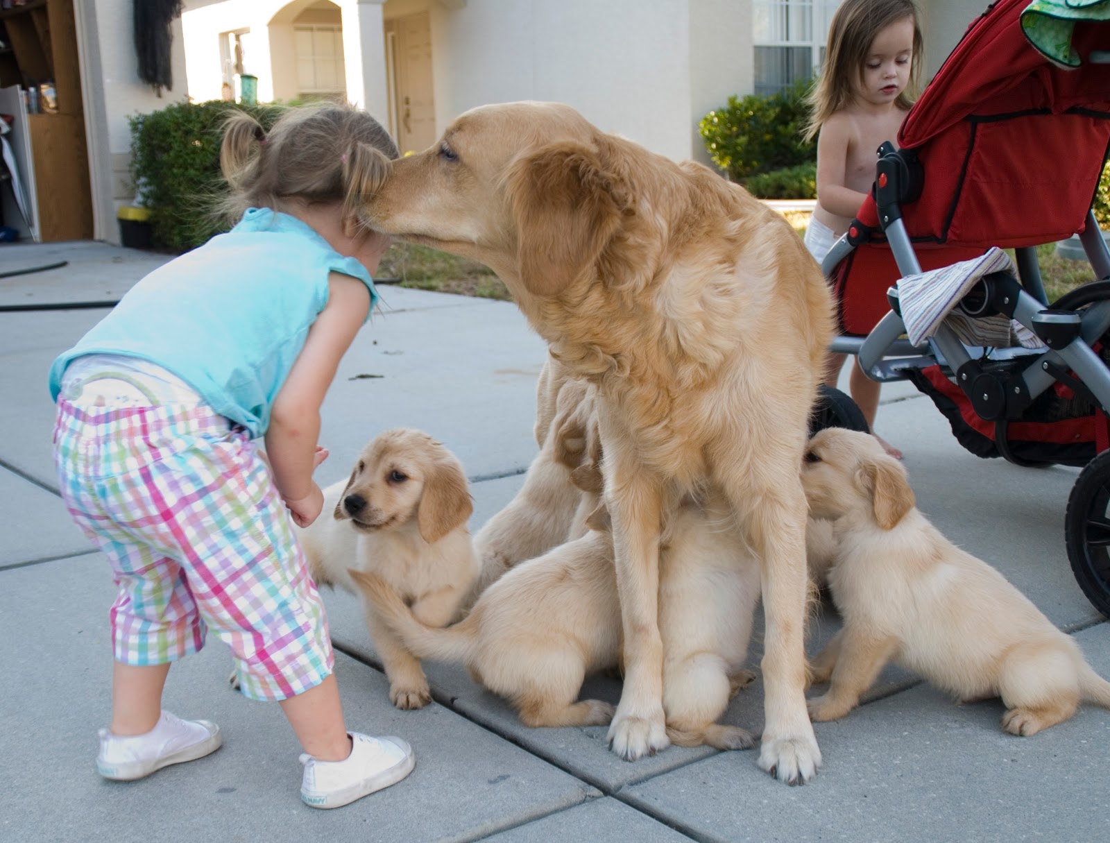 Lately, Shadow has had some competition. The neighbors across the street just had puppies and she L.O.V.E.S. them!