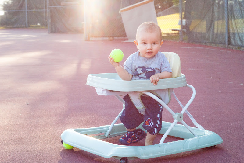 We played tennis with the Cricchio’s last Friday night. It worked out well – the guys played while the girls watched the kids and then we switched. And, the walker was a big hit for both the babies. We’ve been taking it everywhere lately.