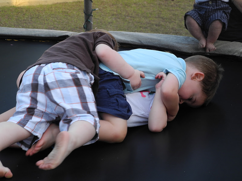 Then we jumped on the trampoline in the dark while wearing glow sticks.