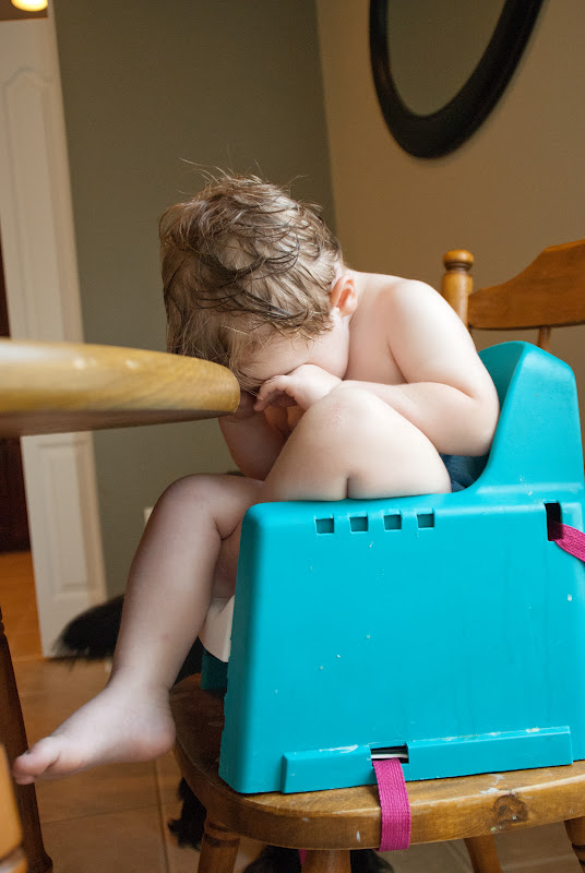| Jax fell asleep like this after his shower. The pool really wore him out. |
