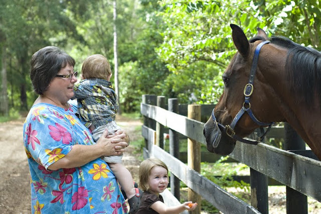| McKay slept in the car and my mom helped with Jax. Jax HATES animals. You can’t entirely tell in this pictures but he was crying to get away from the horse. |